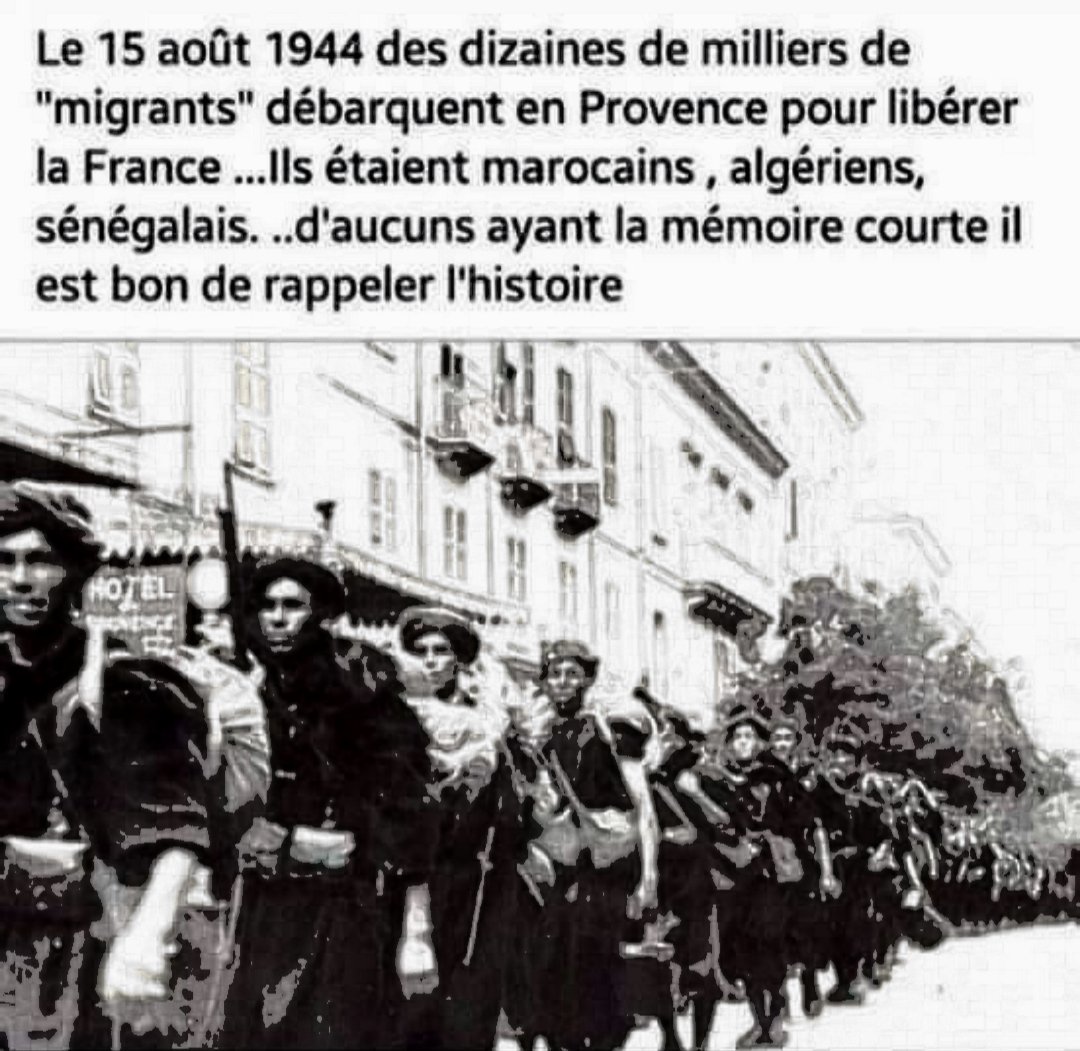 La contribution des étrangers aux armées françaises est ancienne, Louis VII, Louis XIV ou Napoléon Ier ayant recruté des régiments étrangers dans toute l’Europe. Les « africains » étaient estimés pour leur courage et leur combativité. La bataille de Dunkerque en a donné la parfaite illustration quand il fallait stopper les nazis pour permettre aux anglais de battre en retraite. C’est dire à quoi sont destinées ces troupes qu’on déplace avec la bénédiction de leurs pouvoirs. près de 1,5 million de morts sur 9 millions de mobilisés. Nos compatriotes ont payés le prix fort pour sauver ce qu’on appelle , aujourd’hui, des démocraties occidentales.